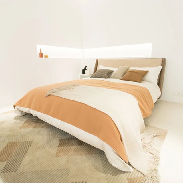 以白色为底蕴,包容浅色木纹纹理,将阿尔卑斯雪山白大面积用于空间内,搭配同色家居,点缀木质纹理带出自然质感,为白色基调的空间增添一分温柔,凸显材质最原始的质感。