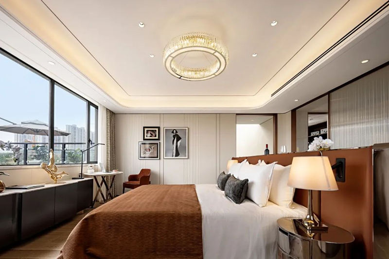 温柔的床褥、流金的光影、质感的摆件共同营造出宁静、安逸的氛围。正如,生活没有永远的问题,也没有永恒的答案,只待自己感悟。