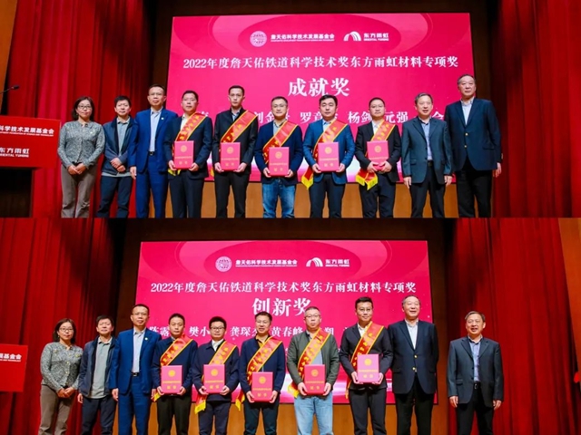 在促进科技创新人才培育方面,东方雨虹于2022年携手詹天佑科学技术发展基金会设立詹天佑铁道科学技术奖东方雨虹材料奖,并对22位获奖者进行表彰。该奖项的设立不仅是对詹天佑铁道科学技术奖的有益补充,更进一步激发广大科技工作者的积极性和创造性,促进材料科学创新研究与成果转化,为材料科学事业高质量发展提供科技支撑。