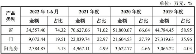 皇派家居产品主要包括窗、门、阳光房,主要应用于个人家装的零售类消费市场。报告期内,窗、门以及阳光房合计占主营业务收入的比例分别为98.95%、99.09%、98.98%和98.97%,具体情况如下: