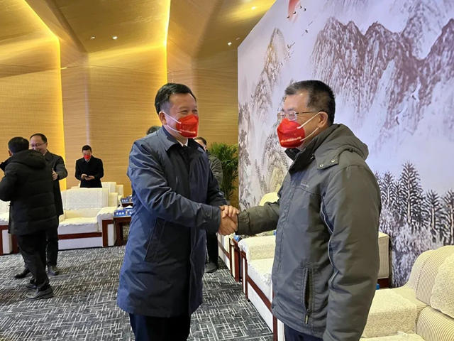 中国建筑材料流通协会会长(右)与南昌市市长万广明(左)会前交流 ▲