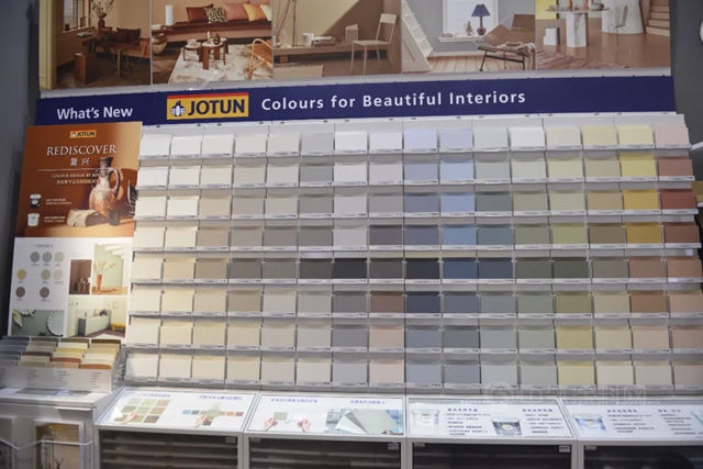 一直以来,佐敦专注色彩研究,是家居行业公认的色彩风向标。展厅中,佐敦的色彩墙更是吸引了不少观众驻足拍照打卡。袁红表示,佐敦拥有一支国际化的专业色彩团队,通过研究每一季、每一年的流行色,打造全球色彩流行趋势。佐敦色彩墙是由佐敦全球色彩专家Lisbeth和北欧知名设计师联合打造。从佐敦28万色彩库中精选128色,每一个颜色都是精挑细选。如果一个空间需要两个及以上的颜色根据“十字搭配法”,每个颜色都能找到相应的搭配颜色,将心仪色设置为基准色,在色卡中找到它横纵的相邻色,都是能和谐搭配的。