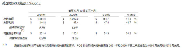 高性能涂料集团营收增长41.3%至15.54亿美元