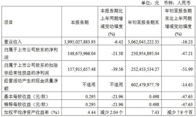 阳光照明前三季度实现营业收入23.05亿元,同比下降20.33%;归属于上市公司股东的净利润1.44亿元,同比增长10.35%。第三季度实现营业收入7.71亿元,同比下降14.16%;归属于上市公司股东的净利润245.59万元,同比下降91.93%。
