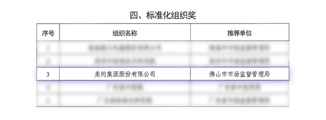 近日,广东省人力资源和社会保障厅和广东省市场监督管理局联合印发了《关于表彰广东省标准化突出贡献奖获奖项目、单位和个人的决定》(粤人社发〔2024]9号),美的集团荣获广东省标准化突出贡献奖。