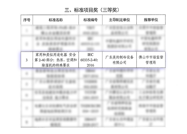 此外,由美的集团家用空调主导的IEC 60335-2-40:2016《家用和类似用途电器的安全 第2-40部分:热泵、空调和除湿机的特殊要求》获标准项目奖三等奖。