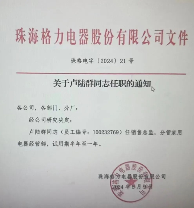 5月9日,格力电器连续发布两则重要通知,分别是《关于成立家用电器经营部的通知》和《关于卢陆群同志任职的通知》,标志着公司在家电全品类营销协同发展的新号角已经吹响。