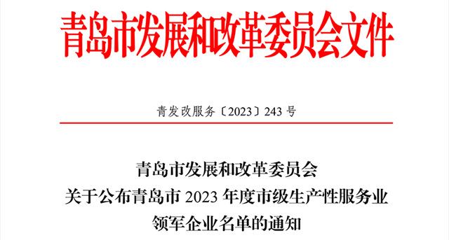 近日,青岛市发展和改革委员会印发了《青岛市发展和改革委员会关于公布青岛市2023年度市级生产性服务业领军企业名单的通知》(青发改服务〔2023〕243 号),经企业申报、区(市)推荐、专家评审等程序,确定了30家企业为青岛市2023年度市级生产性服务业领军企业,城阳区共有2家企业获评,青岛优菲信息技术有限公司成功入选。