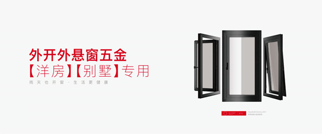 其中,外开外悬窗五金系统是专门针对南方地区气候特点而设计,具有平开和外悬开两种窗型的优势,规避了传统窗型的缺点,并解决了南方地区客户在通风换气、防水防潮、防蚊虫、安全和清洁方面的用窗痛点。