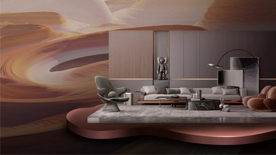 而此次获奖的【提香】系列是一套面向精致主义人群的整体空间设计解决方案,通过现代工艺还原油画般的高端笔触、质感和肌理,满足受众群体对家的审美。
