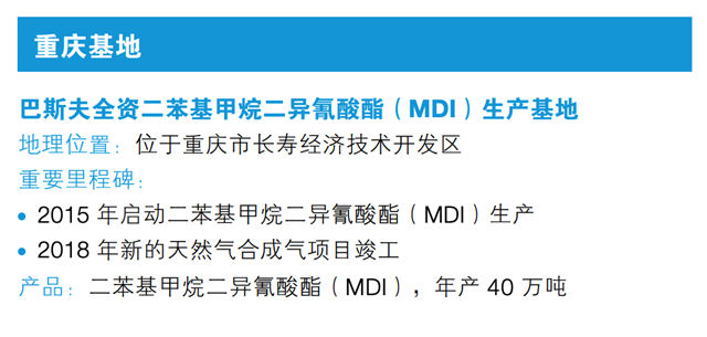 目前,巴斯夫在华主要有六大生产基地,分别是:上海浦东科技创新园、上海漕泾基地、南京基地、南京一体化基地、重庆基地、湛江一体化基地。