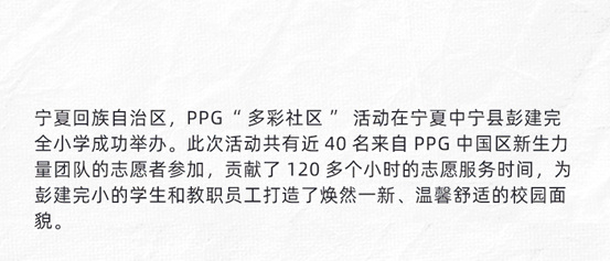 PPG“多彩社区”项目走进中宁县彭建完全小学,点亮多彩新学期