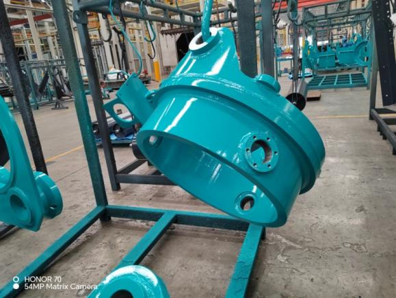 ▲水性工程机械漆在某大型工程机械企业进行湿碰湿底面漆上线涂装