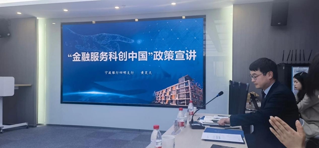 宁波银行黄昊天经理作“金融服务科创中国”政策宣讲,详细解读了宁波银行的惠企金融服务。