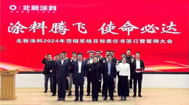 会后,北新涂料立即召开了龙年营销系统目标责任书签订暨誓师大会。陈燕做动员讲话,根据中国建材集团党委书记、董事长周育先提出的“新准快实”工作原则以及薛忠民董事长、管理书记对2024年各业务板块的工作指示,结合北新涂料工作实际作出具体部署,并带领公司班子成员、营销系统骨干一起宣读2024年奋斗誓言。
