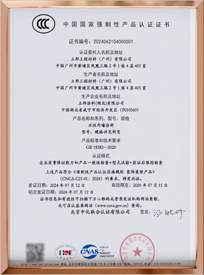 7月12日,立邦凭借专业实力与严格的品质管理体系,顺利通过水性内墙涂料国家强制性产品认证,成为首批通过国家CCC认证的涂料企业,充分践行了自身对产品质量和安全的坚定承诺。