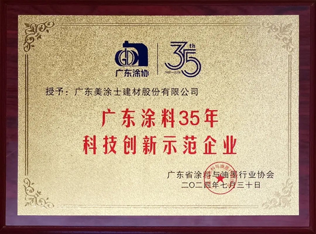 广东美涂士建材股份有限公司“广东涂料35年科技创新示范企业”