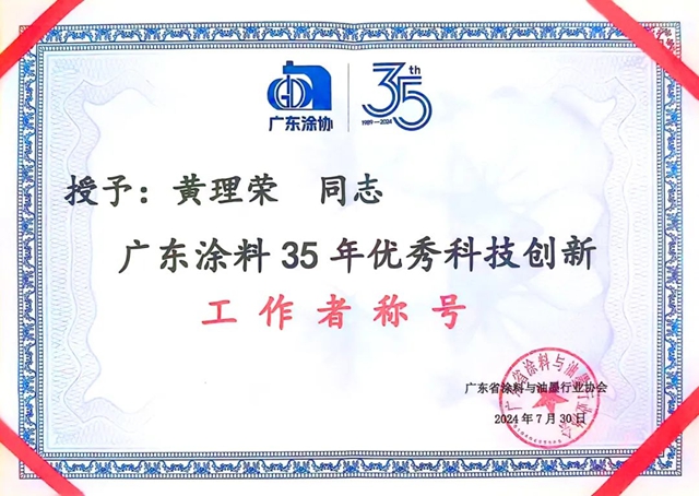 “广东涂料35年优秀科技创新工作者称号”