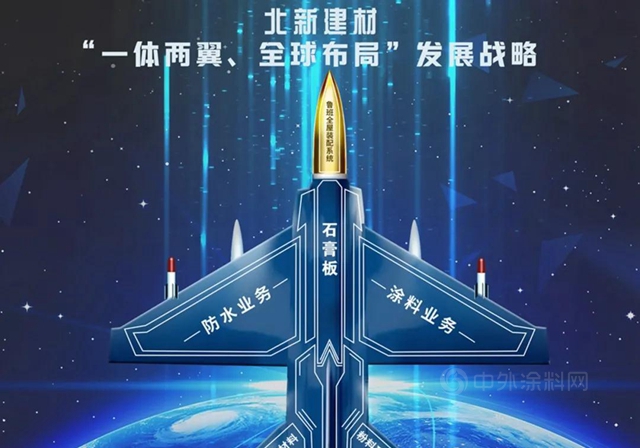 2019年,北新建材确立“一体两翼、全球布局”发展战略,“一体”就是以石膏板业务为核心,做好轻钢龙骨、粉料砂浆、矿棉板、保温材料、纤维水泥板等“石膏板+”配套延伸业务,推广全球原创的“鲁班”万能板全屋装配系统,为客户提供“内墙外墙吊顶地面”一揽子创新产品技术解决方案;“两翼”就是发展防水材料和涂料业务,进入“十倍+”市场,培育战略级主营业务;“全球布局”就是以石膏板为龙头产品,逐步开展全产品系列全球布局,打造世界级品牌。
