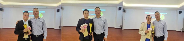 ▲2020年度销售冠军黄志建、第四季度销售冠军袁浩添、第四季度开发冠军赖友明上台分享