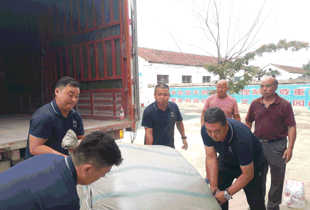 7月27日上午7时,第二批物资包含200床夏凉被、100箱方便面、54箱卫生纸等物料,由菏泽分公司总经理周广成带队出发,经过3小时的长途跋涉,终于抵达河南省周口市扶沟县汴岗镇,将七彩的爱心亲手送到了河南人民手中。