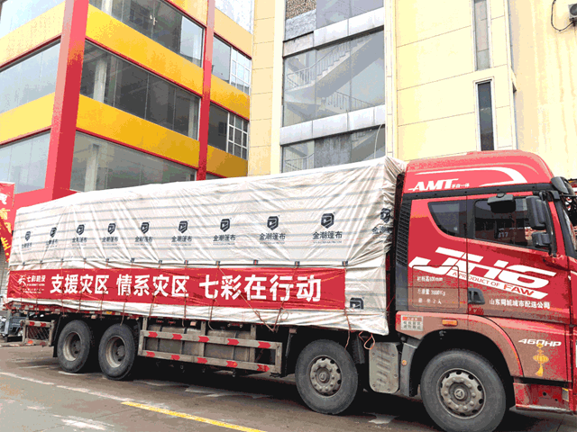 七彩建设积极自愿发起本次善举,克服一切艰难险阻,在完成第一、第二批捐物行动后,又紧急采购了第三批救援物资,包含500床夏凉被、500床褥子、500张凉席、200箱方便面、433箱老面包、150箱卫生纸、240双手套等物料后,又于7月27日上午11时出发,由临沂分公司工程部经理姚旋带队出发,历时七小时到达目的地河南省开封市尉氏县庄头乡,与此同时,郑州分公司总经理杭巨峰、中原分公司总经理孙玉臣和开封分公司工程部经理王龙涛也不辞辛苦的驱车赶到,四家公司齐心协力,发扬不怕苦、不怕累的精神,积极投身到援助当地抢险救灾工作中去,为灾区人民献上了七彩人的诚挚之心。