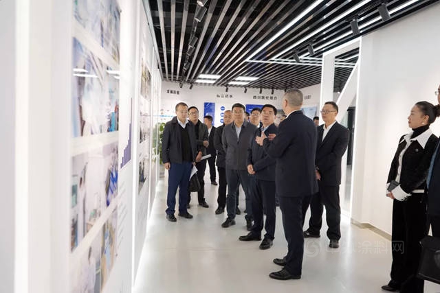 史燚书记一行首先前往参观展厅,就凯伦股份在全国的布局、产品种类、国内外开展的各类项目以及取得的相关荣誉等方面进行了详细了解,随后前往生产线现场参观,重点关心询问了公司2021年以来的生产与销售情况。