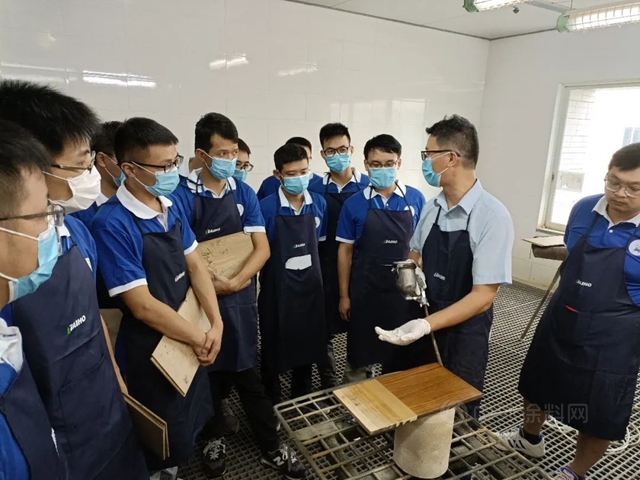此次集训是继2020年索菲亚家居参与大宝漆学习PU漆涂装实战后的第二期培训,由索菲亚组织涂装、质检、设计、技术、研发、采购…等部门骨干十余人,于每周六、周日到大宝漆为期一个月学习,内容包括水性木器漆和UV漆涂装的理论与工艺实操技术。