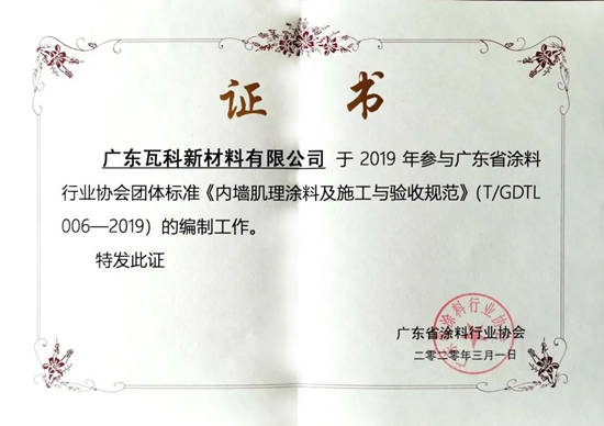而“坚持”这一优良品质,同样在瓦科公司身上展现得淋漓尽致。在整个艺术涂料领域呈现“井喷式”的发展下,越来越多的企业开始涌进这个“赛道”,瓦科自成立之初,就专注于艺术涂料细分领域,打造“小而美,专而精”的品牌,十年如一日地深耕肌理壁膜的产品研发和工艺创新,曾参与多个行业艺术涂料团体标准的编制工作,是广东省涂料行业协会团体标准《内墙肌理涂料及施工与验收规范》的参编单位,成为艺术涂料行业当中的“单打冠军”和“配套专家”。