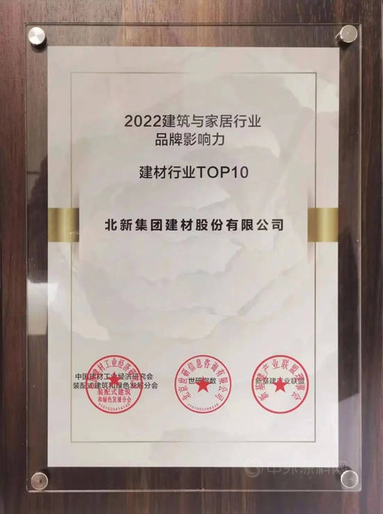 日前,由中华商标协会品牌影响力专业委员会、中国房地产业协会智能建造委员会、中国建材工业经济研究会装配式建筑和绿色发展分会联合主办的“2022建筑与家居产业品牌影响力暨产教融合论坛”在北京举办。论坛发布了品牌影响力评价成果——“2022建筑与家居产业品牌影响力指数榜”,北新建材荣获“2022建筑与家居产业品牌影响力建材行业TOP10”。
