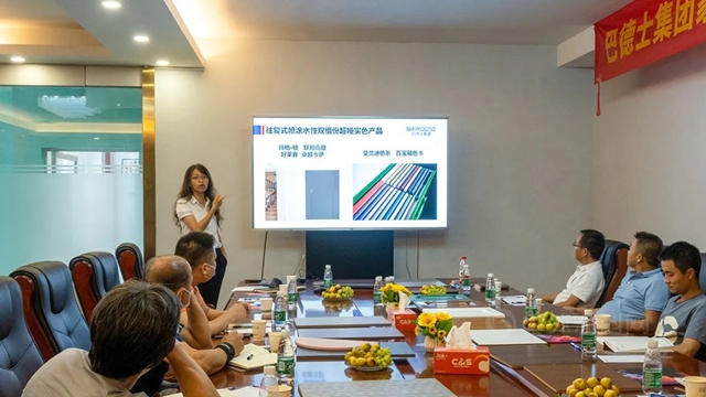 在互动交流环节中,双方就产品线上可能出现的疑难杂症以及涂装过程中容易忽视的细节问题展开了深入的互动讨论交流,帮助大家避免生产中遇到的一些实际难题。巴德士为了让中山兆晨团队更好地实现交流,在培训会场及展厅准备了丰富的产品样板,中山兆晨团队对样板效果非常认可,提升团队推广巴德士家具漆产品的信心。