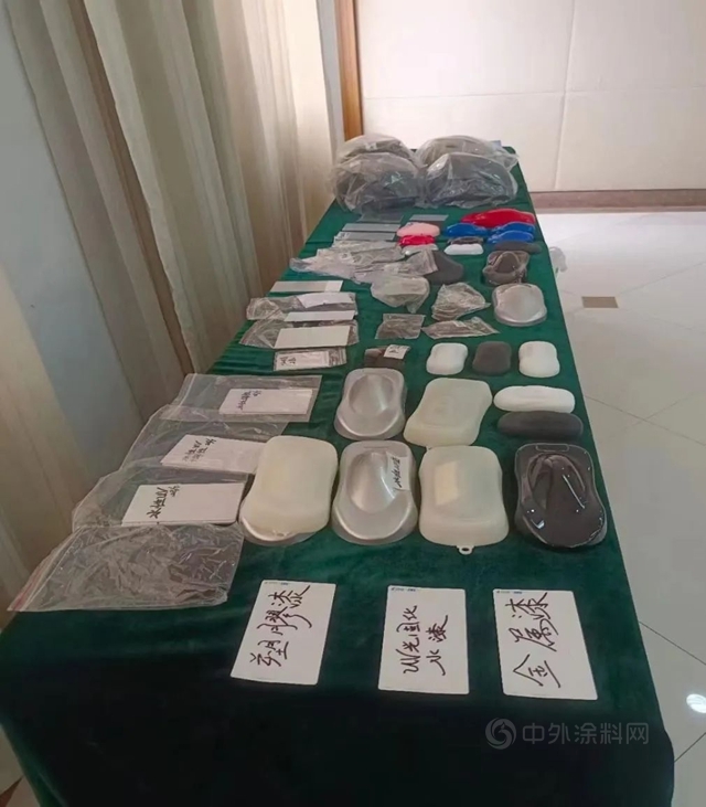 会议现场设置了水性喷涂产品展示区,应用端企业能够更加直观地了解当前水性喷涂的工艺和效果。