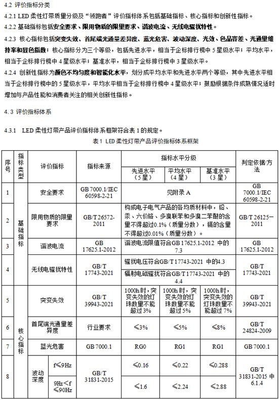 《质量分级及“领跑者”评价要求 LED柔性灯带》