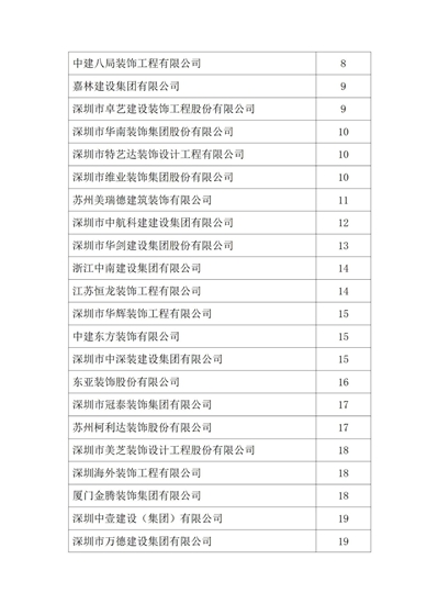 2021年度行业综合数据统计分为装饰、幕墙、设计、建材四类,现将2021年度建筑装饰行业数据统计结果名单予以公告。